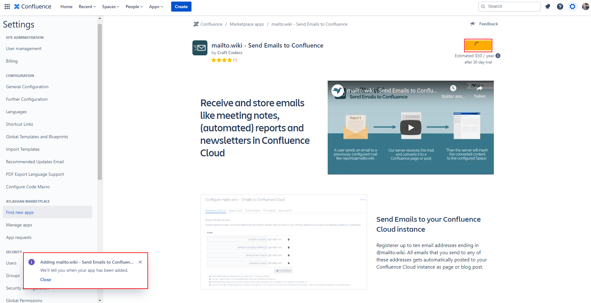 You may encounter the following issues while trying to install “mailto.wiki – Email for Confluence”: